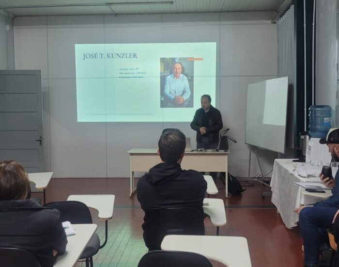 Na noite de ontem, o advogado José Teodoro Kunzler conduziu uma palestra sobre “Direito Trabalhista para Empreendedores” para os participantes do Projeto Empreendedores em Ação. O evento, promovido pela Acit e realizado pela Coeducars, ocorre às terças-feiras à noite e conta com a participação de indicados pelas empresas associadas da Acit.
